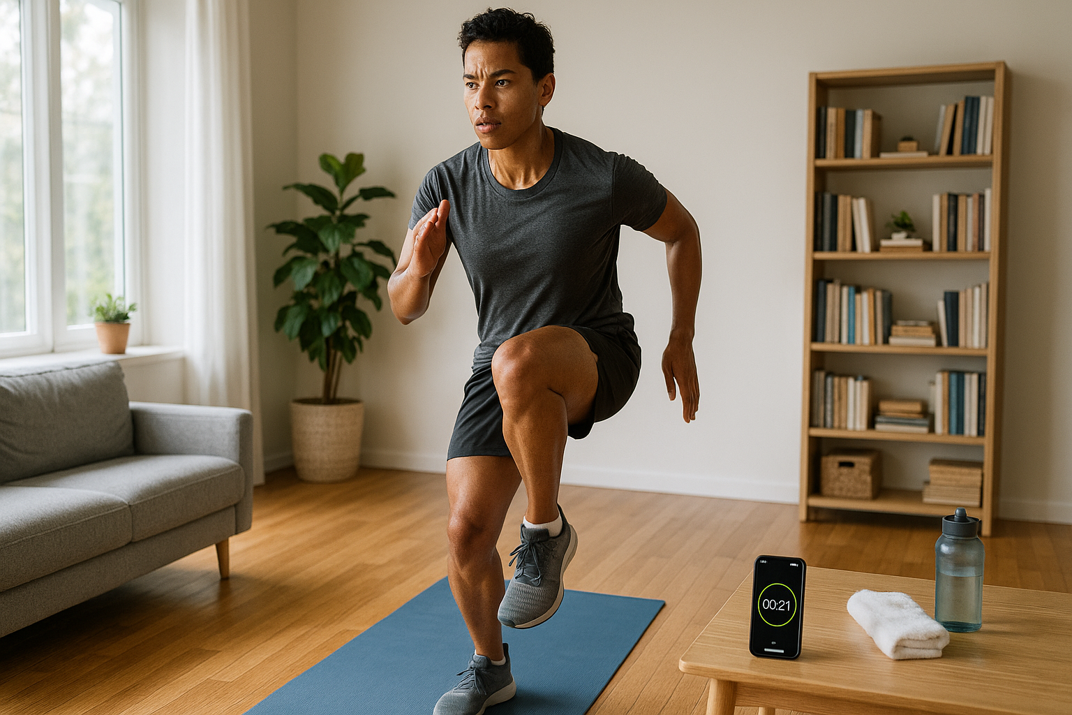 This plan respects neighbors and creaky floors while still delivering HIIT intensity. You’ll rely on tempo, isometrics, and directional changes to spike heart rate without stomping. Think “stealth athlete”: powerful, quiet, controlled.