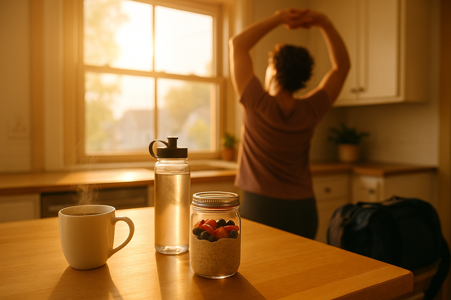 Start tomorrow: Set your wake window, fill a bottle, put shoes by the door, and write down three words—light, move, protein—to cue your new morning.