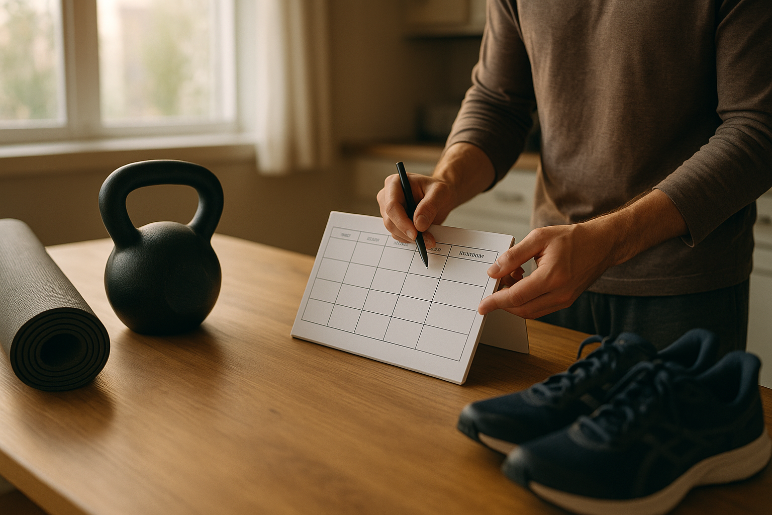 Any simple combination works: a calendar with time windows, a notes app or spreadsheet for sessions/minutes/steps, and a basic timer. Optional: a wearable for steps/HR. Resist app-hopping; the best tool is the one you’ll actually use. Review weekly in ten minutes, adjust floors/ceilings, and set two fresh “if-then” rules for next week.