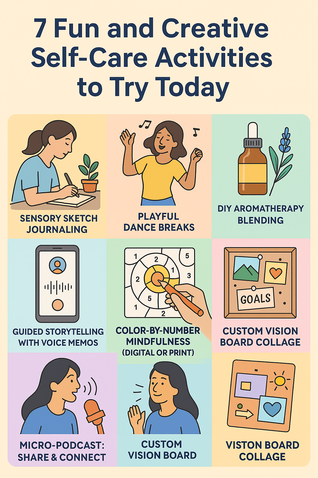 Finally, self-care is a process, not a destination. Doing creative things every day, like sensory painting, playful dance, or vision board collages, can help you become more resilient, happy, and connected to yourself. Take little measures, stay interested, and appreciate every minute you spend on your health. Remember that the best approach to take care of yourself is to do something you enjoy over and over.