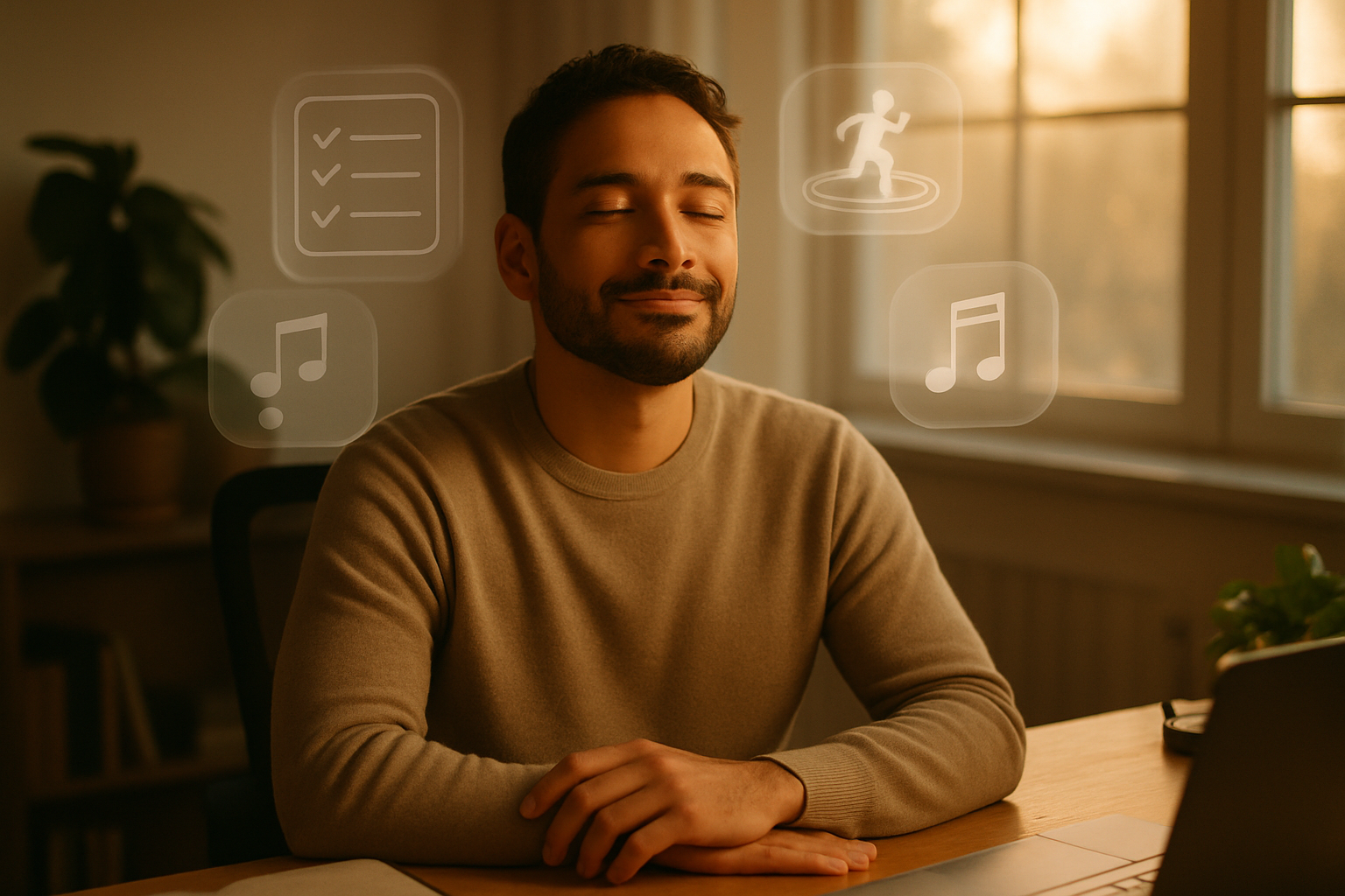 • Sensory swaps: focus on breath tempo, foot pressure, or keystroke rhythm.
