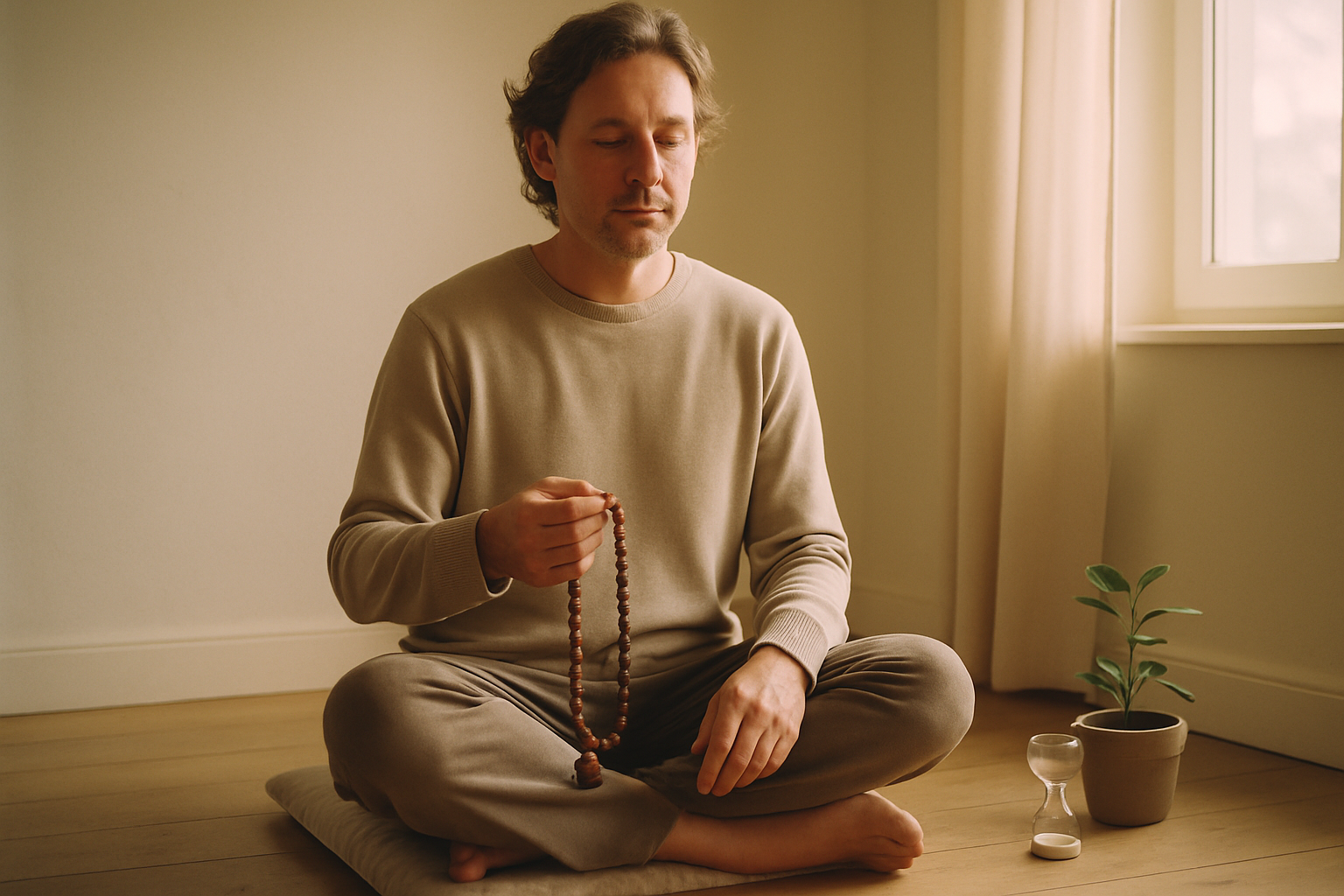The most effective plan is the one you’ll keep. Start small—5–10 minutes—then add time in 2–5 minute steps as repetition feels more natural. Many people prefer consistent anchor times (e.g., after waking or before bed) because decision fatigue is the enemy of practice. Keep posture simple: a chair with feet grounded or a cushion with neutral spine; pain is distracting, not noble. A quiet timer or one mala round is plenty; end cleanly rather than “half-meditating” while checking the clock.