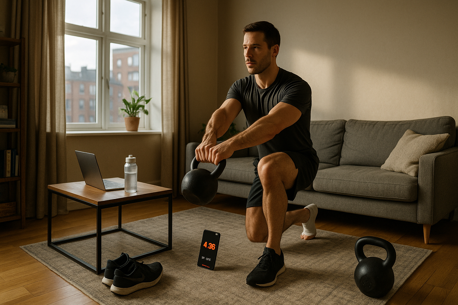 Frictions kill short workouts. Reduce them by keeping a tiny home/office kit in plain sight: one kettlebell or dumbbell you can press and squat, a long resistance band, and a jump rope (space permitting). With just that, you can train every pattern in minutes. Stash it where you move daily—by the desk, TV, or door—so a 10-minute window instantly becomes a session rather than a search.