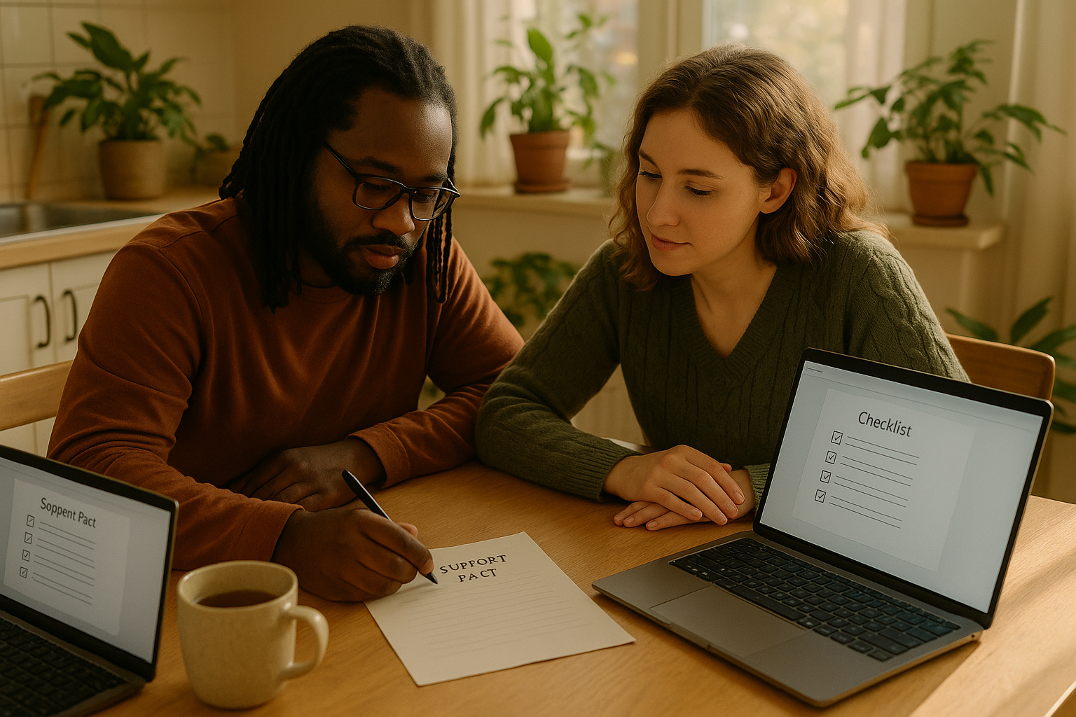 Mutual support agreements don’t replace love or spontaneity—they protect them. By clarifying purpose, mapping needs and capacity, setting boundaries, and agreeing on signals, check-ins, crisis steps, and repair rituals, you trade ambiguity for confidence. The result isn’t rigidity but reliability: a shared rhythm that holds you both when life gets hectic or heavy. Start with a one-page pilot focused on your biggest pressure point. Keep your signals simple, your check-ins short, and your crisis plan visible. Then review, prune, and adjust until the agreement feels like a helpful teammate rather than homework. The goal is ordinary days that go smoother and hard days that feel safer—so your relationship has the bandwidth to grow.