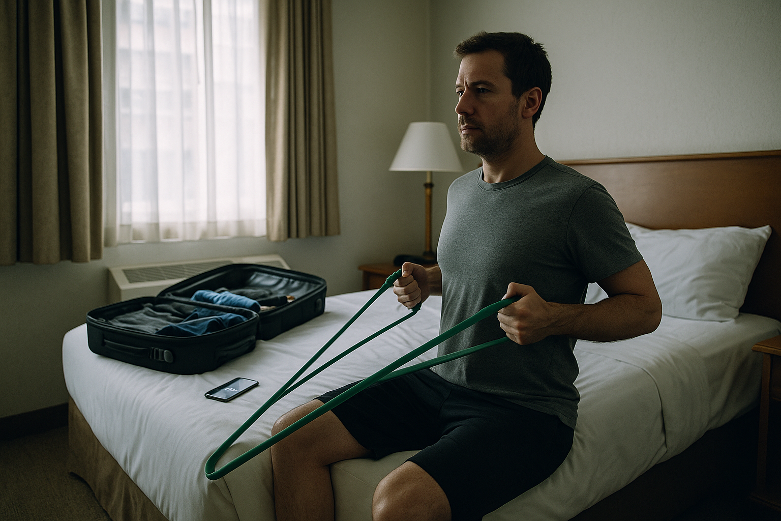 Travel disrupts your environment, schedule, and sleep—so shrink your goals, switch to exercise snacks (3–10 minute bouts), and timebox predictable windows. Aim for two 10–20 minute movement sessions or five 3–6 minute snacks across the day. Use stairs, bands, a jump rope, or a doorframe for isometrics. For cardio, brisk airport walks or hotel-bike intervals work well. Nutrition-wise: prioritize protein at each meal (palm-sized), water every flight hour, and a fiber add-on (salad, fruit). For jet lag, expose yourself to morning light at destination time and keep caffeine to the first half of the day.