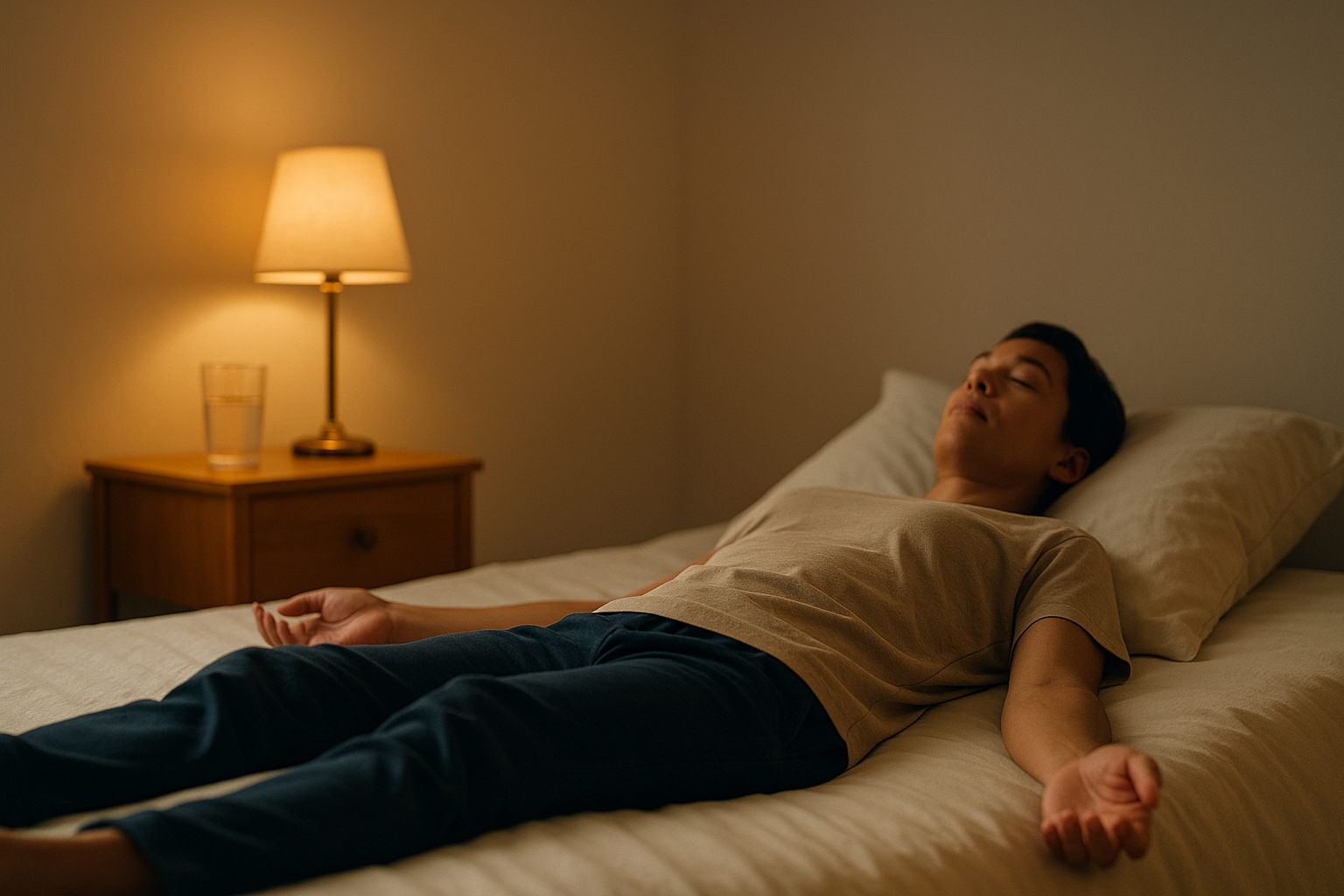 Finish with a full-body sweep: inhale and lightly tense everything at once (10–20% effort), hold 5, then exhale and release from head to toes while silently repeating your cue word. Notice the global drop in tone, the heaviness of limbs, and the ease of breath. Lie or sit in this relaxed state for another 30–60 seconds before moving. If you’re in bed, let yourself drift. If you’re at your desk, stand up slowly to avoid light-headedness.