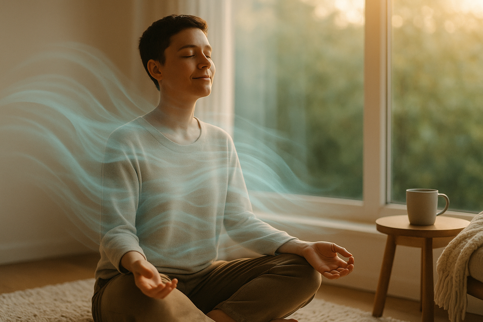 Social stress or crowded spaces can spike vigilance. The boundary bubble is a quick visualization that defines your space without confrontation. Imagine a translucent sphere around you—arm’s length in radius—set to your preferred color/texture (smoky quartz, soft linen). On inhales the bubble firms slightly; on exhales it becomes more permeable to positive cues and less to noise. You stay connected, not cut off, with clear energetic boundaries that help you remain calm.